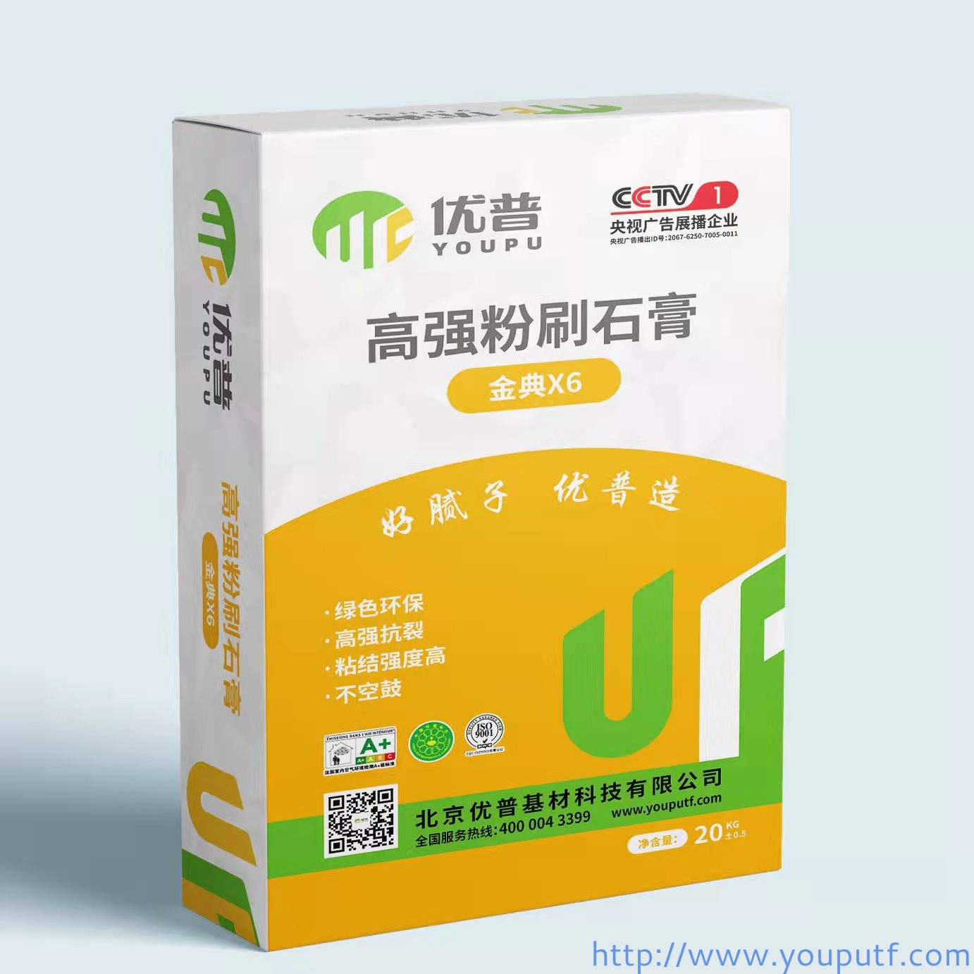 優普“金典X6系列”高強粉刷石膏,是優普公司最新產品,采用進口緩凝技術,與西卡公司長期戰略合作,由高強石膏、均勻細砂、碳酸鈣及添加劑混合而成的新型內墻面基層抹灰材料,具有良好的抗裂、嵌縫、填充和找平功能,適用于混凝土、加氣混凝土、磚混砂漿墻面基層抹灰找平 。綠色環保,歐洲標準,零醛零VOC,通過法國A+認證。